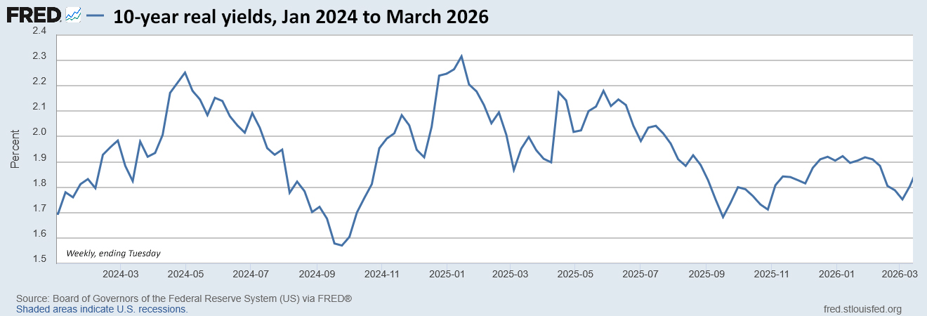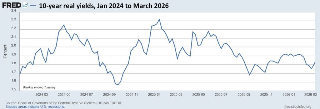 For a while, that January auction looked like a big win for investors, as the 10-year real yield dipped to as low as 1.72% on February 27, one day before the U.S./Israel attack on Iran. Now two weeks later, CUSIP 91282CPU9 is trading on the secondary market with a real yield of 1.90%.