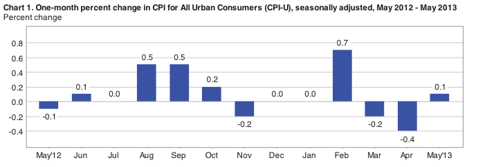 While a rise of 0.1% is mild, it also offsets fear of deflation, which consumers had seen in March and April, when energy prices declined sharply. Here is the trend over the last 12 months: