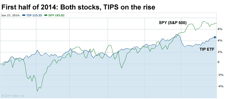 So here it is: Stocks versus TIPS in the first half of 2014. If you held either, you were a winner. This is the ‘Goldilocks market,’ not too hot, not too cold, just plain perfect.
