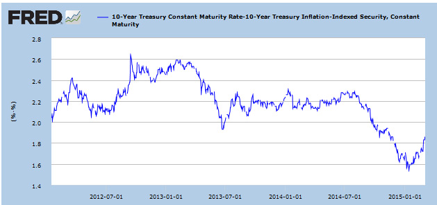 I just noticed that the TIP ETF, which holds a broad range of maturities, is trading at $112.01 today, down 1.1% for the day. The ETF reached $114.14 on Feb. 27, and has since fallen 1.9% in just five trading days.