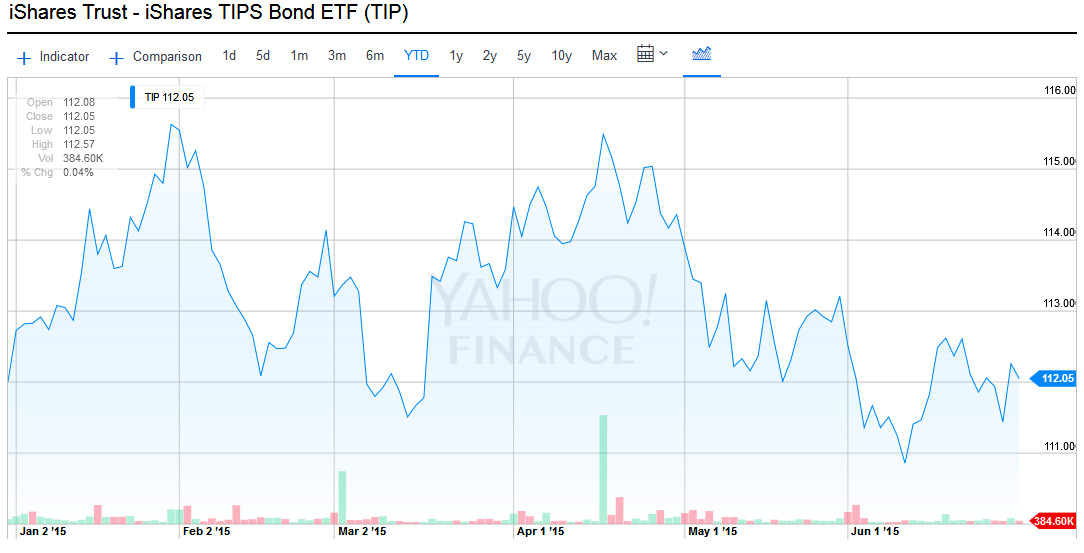 Keep this in mind: When the price of the ETF rises, TIPS yields are declining. When it drops, TIPS yields are rising. Buy-and-hold investors in TIPS want to see higher yields.