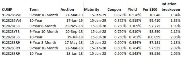 - The inflation breakeven rate came in at 1.94%, a fair number that indicates this TIPS is neither cheap nor expensive versus a nominal Treasury.