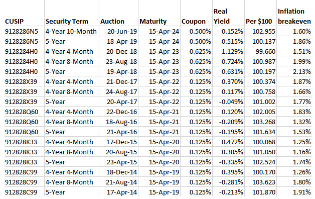 The Treasury’s $15 billion reopening auction of CUSIP 9128286N5 – creating a 4-year, 10-month Treasury Inflation-Protected Security – generated a real yield of 0.152%, dramatically lower than recent auctions of this term.