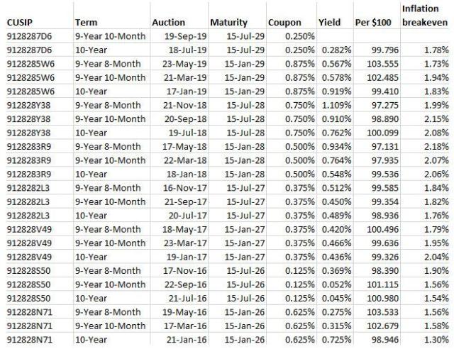 - The inflation breakeven rate is currently running at 1.68%, a low number that should draw interest in this TIPS from big-month investors.