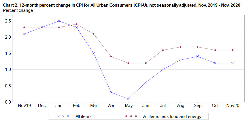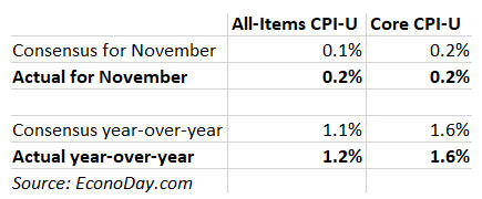 The Consumer Price Index for All Urban Consumers (CPI-U) increased 0.2% in November on a seasonally adjusted basis, the U.S. Bureau of Labor Statistics reported today. Over the last 12 months, the all-items index increased 1.2%.