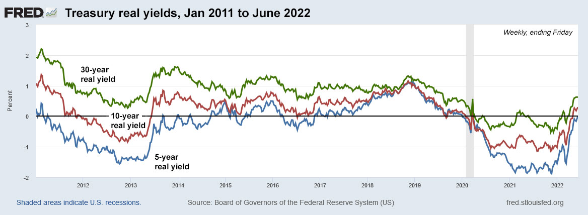 Here are the real yield numbers since June 1, based on the Treasury’s daily yield curve estimates:
