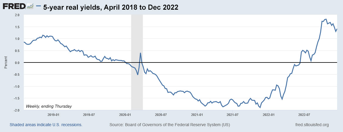 Here’s the trend in the 5-year real yield over the last 4 1/2 years, showing how yields have declined since peaking in October, but remain historically attractive: