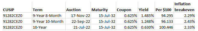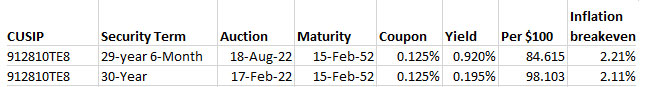 I did participate in both 30-year auctions in 2022. It’s been educational to see the market value plummet–but in my view, had I invested that money back in February in broad index bond or stock funds instead, I’d be *actually* down at least 12%, so the 30-year TIPS (if held to maturity, as I’m committed to doing) did it’s job as a rock solid safe investment.