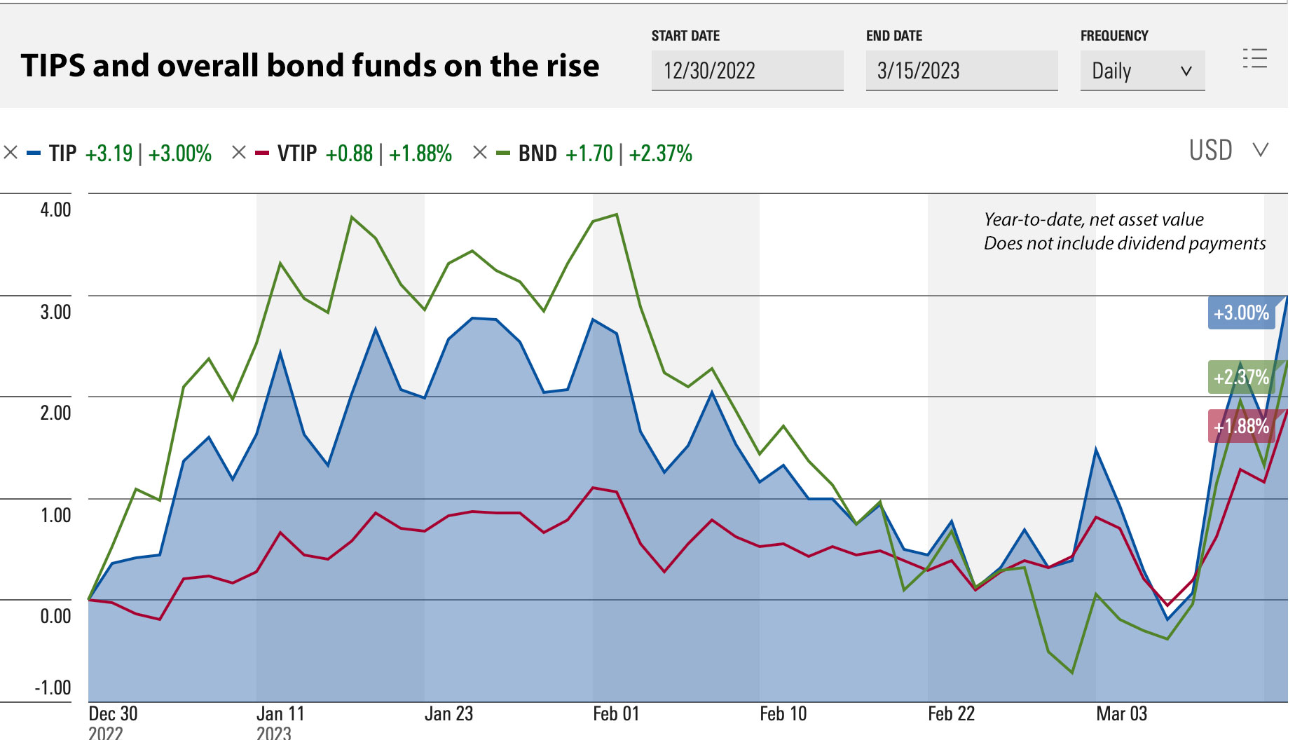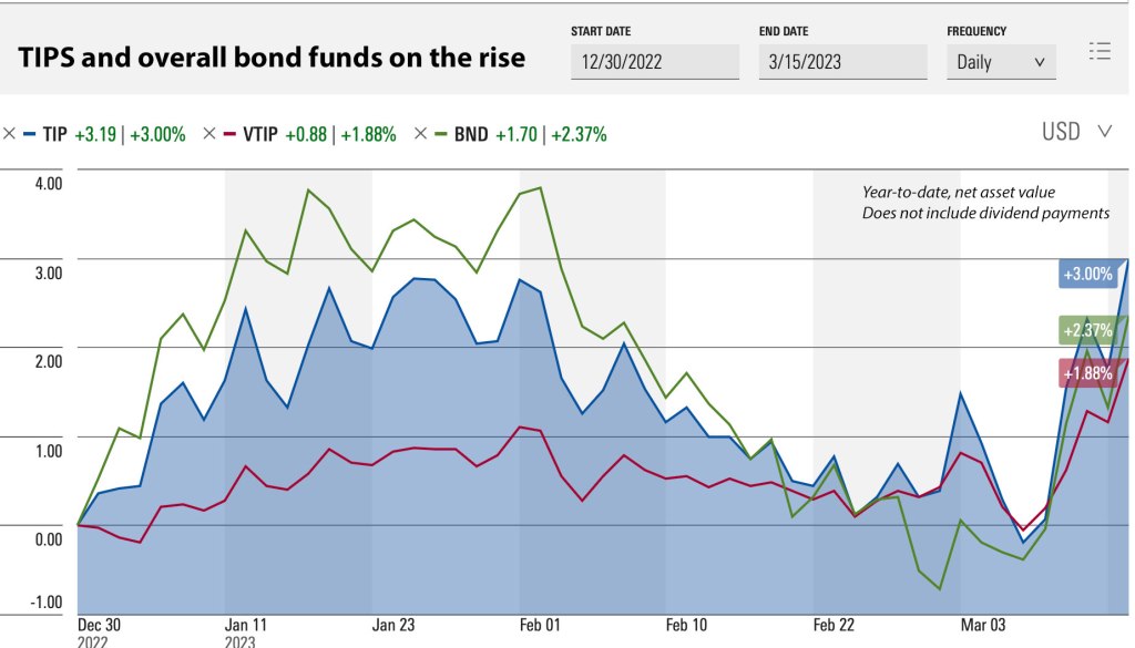 This is good news for holders of TIP ETFs and mutual funds, which suffered severe losses in 2022. The overall TIPS market is doing well as investors see the possibility of stronger inflation ahead if the Fed changes course.