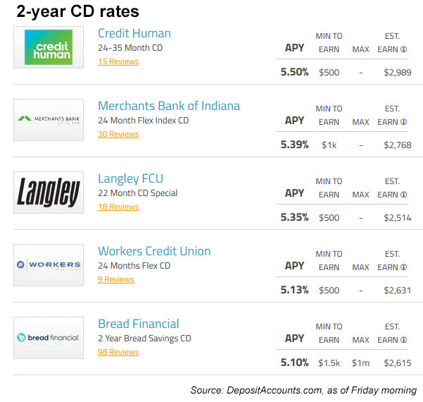 Here is information I found on Friday for best-in-nation 2-year CD rates.