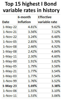 – Even the next 3.38% annualized inflation rate is the fifth highest I Bond variable yield since May 2011.