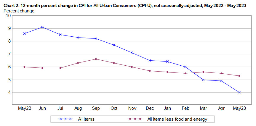 40 Responses to U.S. inflation continued sliding lower in May, falling to 4.0% year-over-year