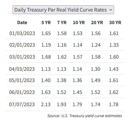 Here is a look at the real yield curve spectrum through 2023, so far: