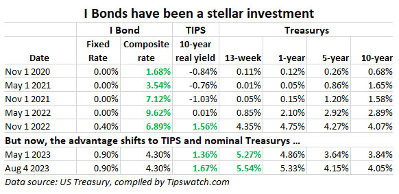 And then, when inflation began surging into early 2022, the I Bond got a sensational six-month variable rate of 9.62%, towering over the yields of a 13-week Treasury bill (0.85%) and 10-year Treasury note (2.89%).