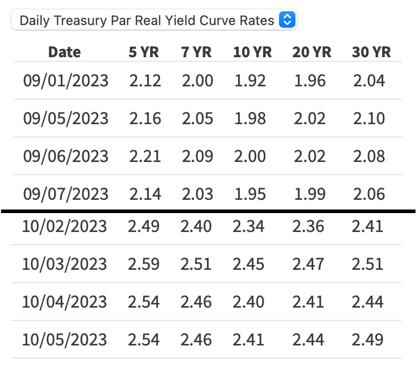 Here is a chart showing real yields over the first four trading days of September versus the first four days of October: