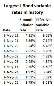 I will be writing more about this in coming days. But a quick thought: If the new I Bond fixed rate is 1.2% or higher at the reset, would I be a buyer in 2024? Absolutely, yes.