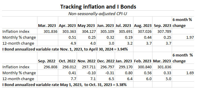 The new variable rate was set by non-seasonally adjusted CPI-U from April to September 2023. The BLS set the September inflation index at 307.789, an increase of 0.25% over the August number. Here are the data: