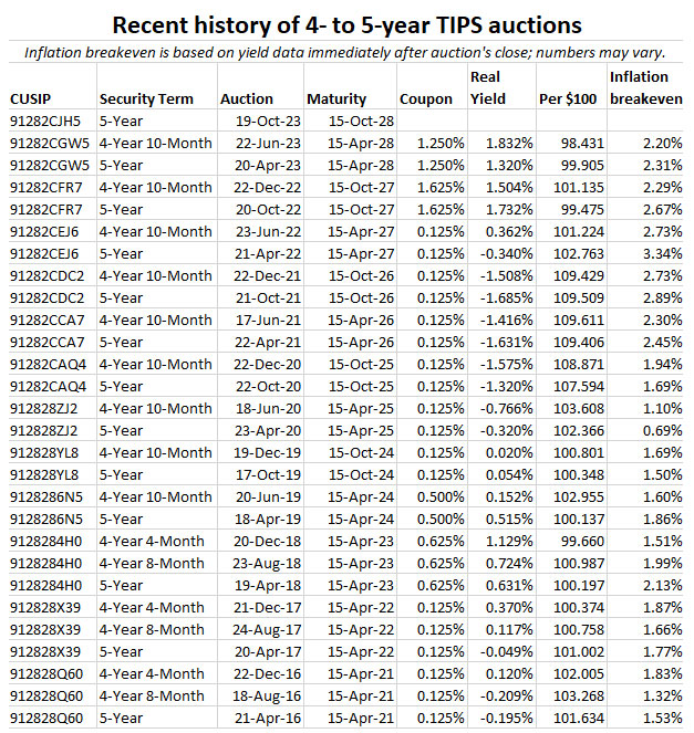 Here is the history of recent TIPS auctions of the 4- to 5-year term:
