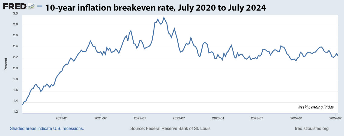 Here is the trend in the 10-year inflation breakeven rate over the last four years: