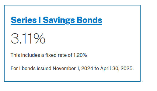 The U.S. Treasury just announced a 1.20% fixed interest rate for the Series I Savings Bond, creating a new six-month composite rate of 3.11% for purchases from November 2024 through April 2025.