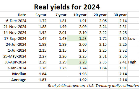 Here is a recap of real yields through the year, showing the high and low yields based on the 10-year term.