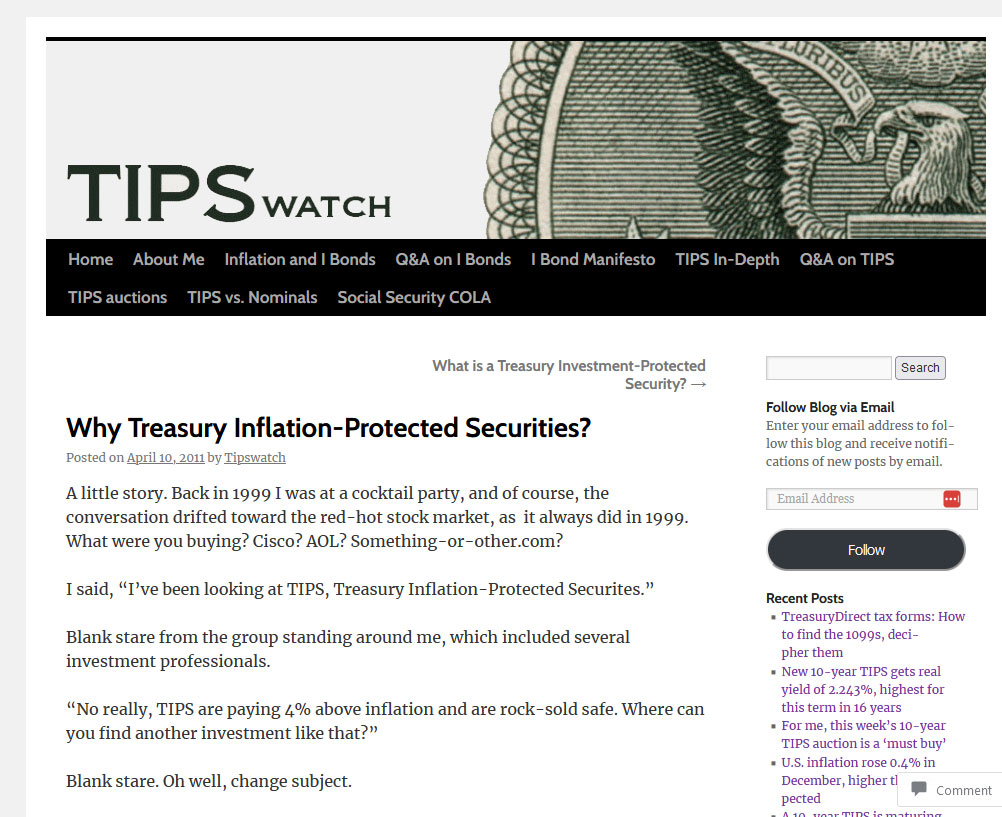 It sounds like Tipswatch.com has been a labor of love for you. I am very thankful for your efforts – and I’m sure many, many others are as well. Your posts have been enormously useful to me. Even if you stopped posting today, the information and insights you’ve already provided would continue to have a lasting impact on us for many years to come. I started reading tipswatch.com because I was already interested in TIPS and I Bonds, but I stayed because you’ve made it much easier to understand their many nuances.