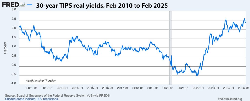 Here is the trend in the 30-year real yield over the last 15 years (since the Treasury began to issue 30-year TIPS after a 9-year pause):