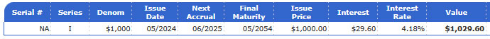 If you bought an I Bond in May 2024, also with a fixed rate of 1.30%, you transitioned this month to earning 4.18% from May to October 2025.