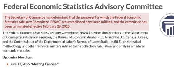 I place substantial emphasis on Trump’s February/March 2025 terminations of the committees of volunteer (i.e., unpaid) experts who had been advising the government (BLS, Census, etc.) on ways to ensure the accuracy of its statistics.
