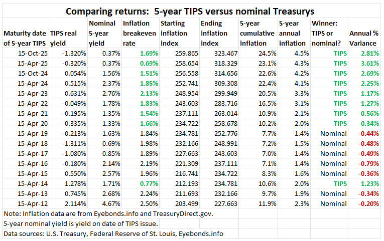 25 Responses to A 5-year TIPS is maturing today. How did it do as an investment?