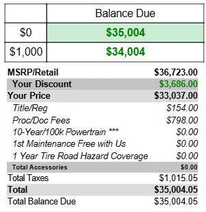 Eventually, one dealer came through with a true out-the-door price. This is what my bottom line looked like: