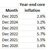 I will cheer when annual CPI falls below 2.5%. Maybe 2026 will be the year, but I’m not holding my breath.