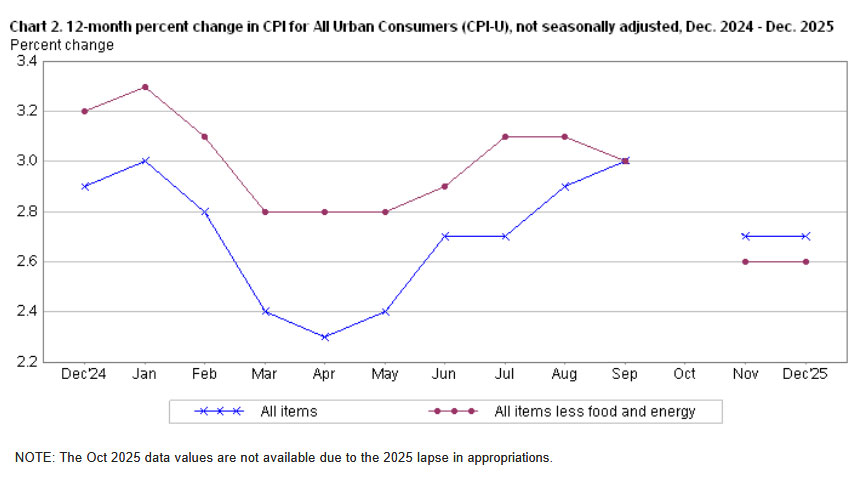 Beyond any other “brewing crisis” factors, I’d say this report does not support a cut in interest rates by the Federal Reserve in January. Inflation retreated slightly in 2025 but remains well above the Fed’s goals. Add to that threats of criminal indictments and Jerome Powell’s strong response, and you get some sort of gridlock. The current Fed is not going to bend to pressure.
