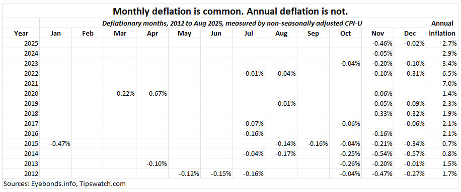Non-seasonally adjusted deflation is common in the months of November and December, when holiday discounting kicks in. That is why the CPI is seasonally adjusted. Over the year, these variances balance out.