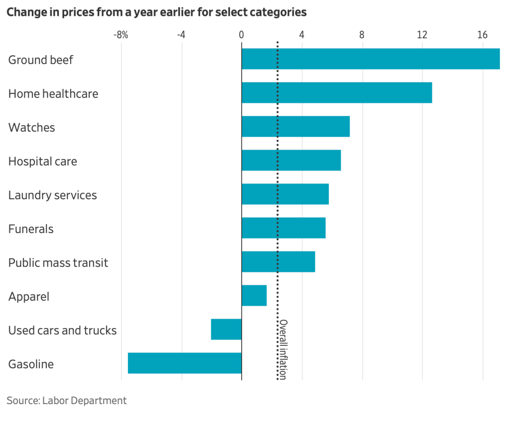 The Journal included this rather pointed graphic to demonstrate that prices are not falling in many important consumer areas: