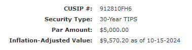 In summary, an investor buying $10,000 par of this TIPS at today’s auction paid $9,941.93 for $10,001.60 of principal and will now earn inflation adjustments equal to inflation for 30 years, plus an annual coupon of 2.375% paid on inflation-adjusted principal.