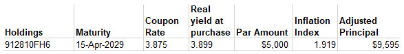 This is a very good result for investors who can accept the 30-year time frame and hold to maturity. CUSIP 912810UH9 is the most attractive 30-year TIPS issued in 24 years, in my opinion. But I wasn’t a buyer because the long maturity doesn’t fit into my likely lifespan.