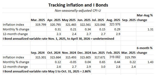 Oct. 24 update: September inflation report sets I Bond variable rate at 3.12%